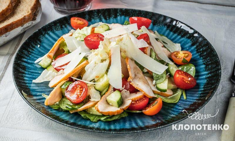 Святкові салати без майонезу — це саме про такі страви, як салат з куркою, чері та айсбергом: справжня знахідка, коли хочеться чогось легкого, смачного й водночас святкового. Він чудово підходить для новорічного столу та готується буквально за 15 хвилин. Копчена грудка значно спрощує процес, бо не потребує додаткової термічної обробки, а поєднання хрумкого айсбергу, соковитих томатів та пармезану робить салат не лише збалансованим за смаком, а й привабливим на вигляд. Саме той випадок, коли простота працює на вау-ефект.