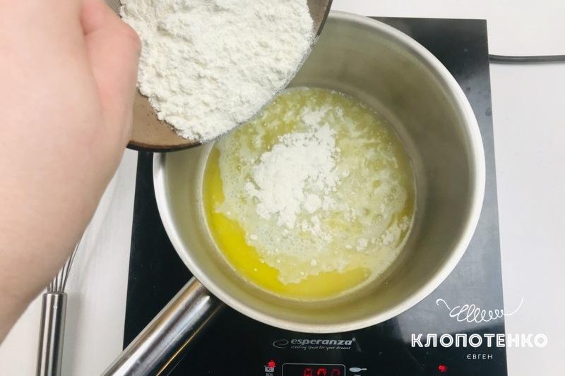 У сотейнику розтопіть вершкове масло (50 г) на маленькому вогні. Важливо, щоб воно не пригоріло.