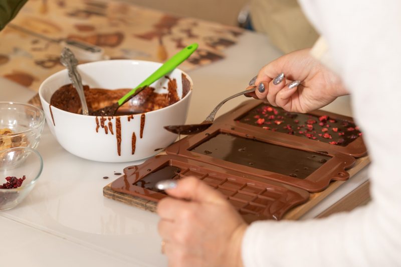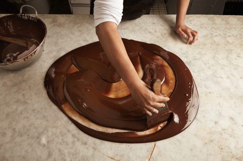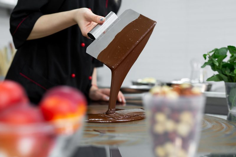 - Шоколад слід помішувати та розмазувати холодною поверхнею, доки він не застигне, досягнувши температури 27 градусів (для темного) або 26 для молочного.