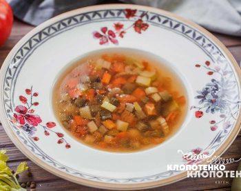Це ваш базовий рецепт пісного супу. Доступні продукти, 45 хвилин часу і зігріваючий, овочевий суп готовий! Цей рецепт — українська варіація класичного італійського супу Мінестроне.