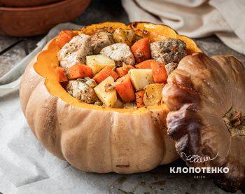 Гарбуз запечений з м’ясом та овочами
