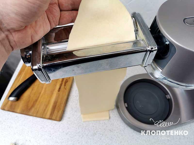 Roll the dough into a ball, cover with a kitchen towel and let it rest for about 20 minutes. If you have a rolling attachment, roll the dough out into a thin sheet. If you don’t have an attachment like that, don’t worry – you’ll just have to roll it out using a rolling pin.