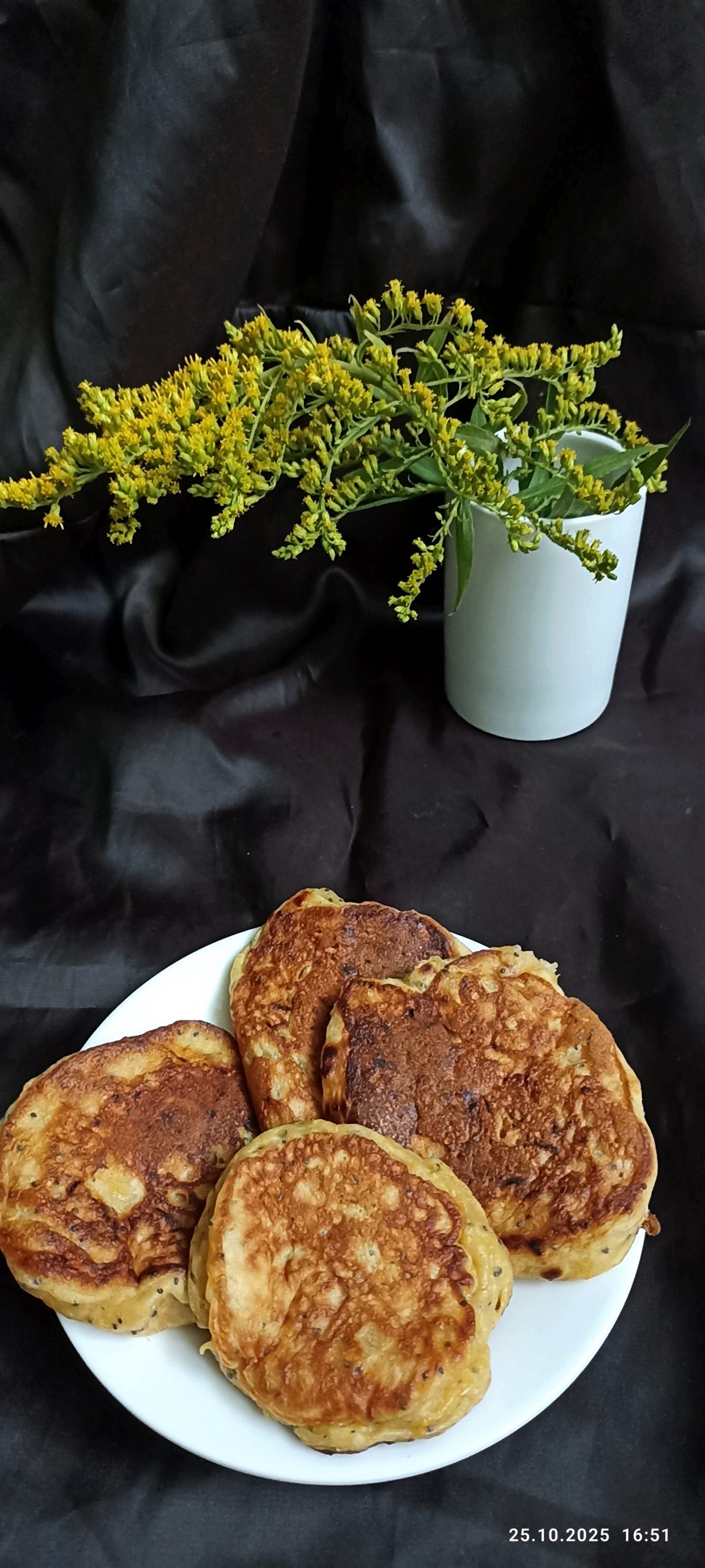 Подавайте оладки зі сметаною, медом чи варенням за бажанням. Нехай смакує!