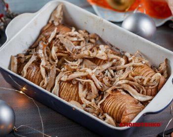 Запечена картопля з грибами — проста й улюблена багатьма страва. У цьому варіанті її смак розкривається по-новому завдяки тонкій нарізці картоплі. Вона пропікається рівномірніше, а гриби додають насиченості. У результаті виходить ароматна й ситна страва, яку можна подати як самостійну або як гарнір.