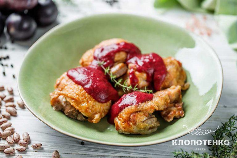 ВідеоКурячі стегна в духовці з соусом зі слив та квасолі від Євгена Клопотенка