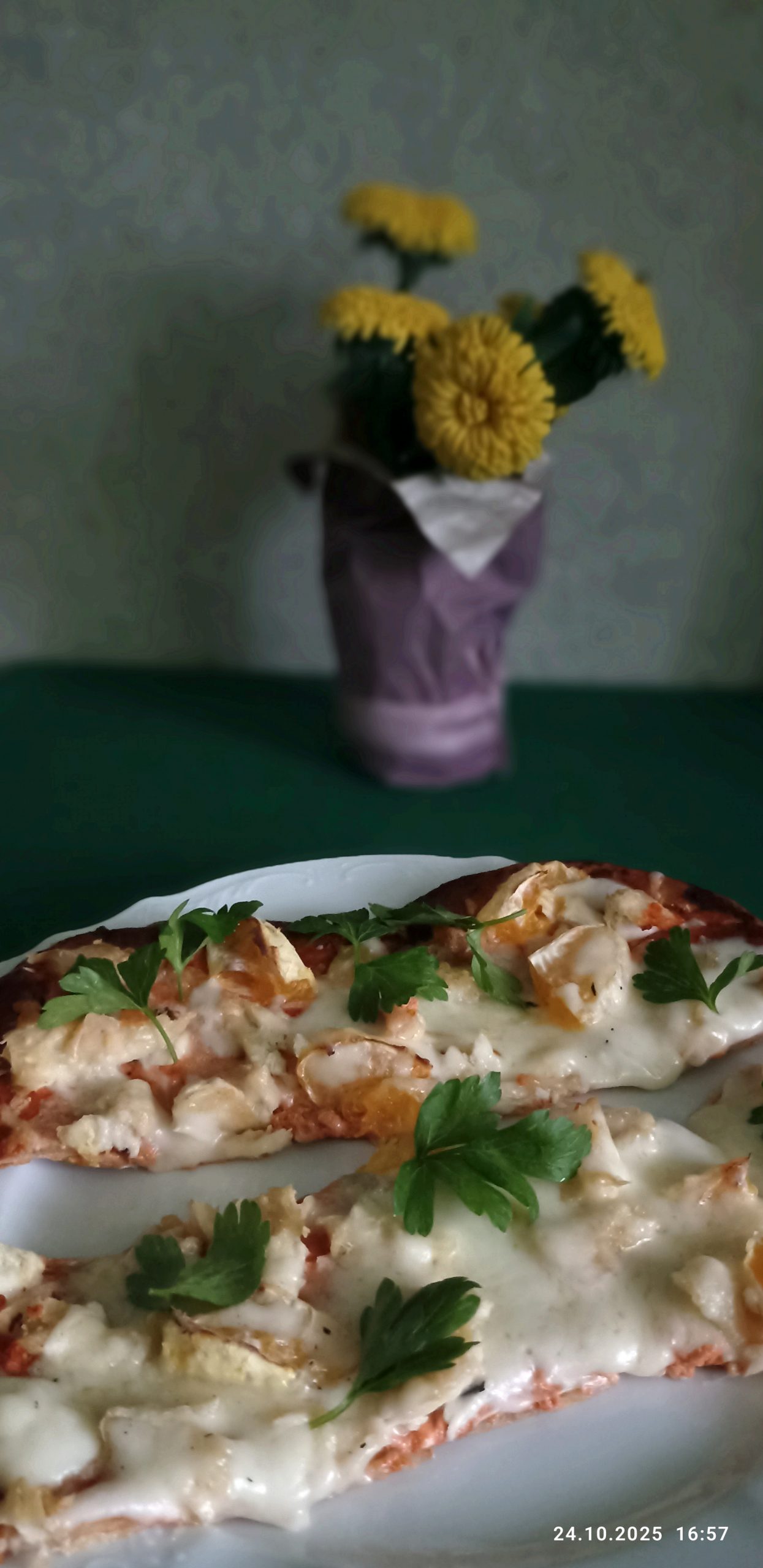 Передплати прямо заразІз солодким посмаком. Піца з куркою та мандаринами