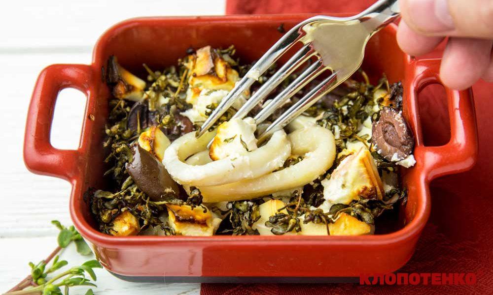Кальмари з фетою і оливками