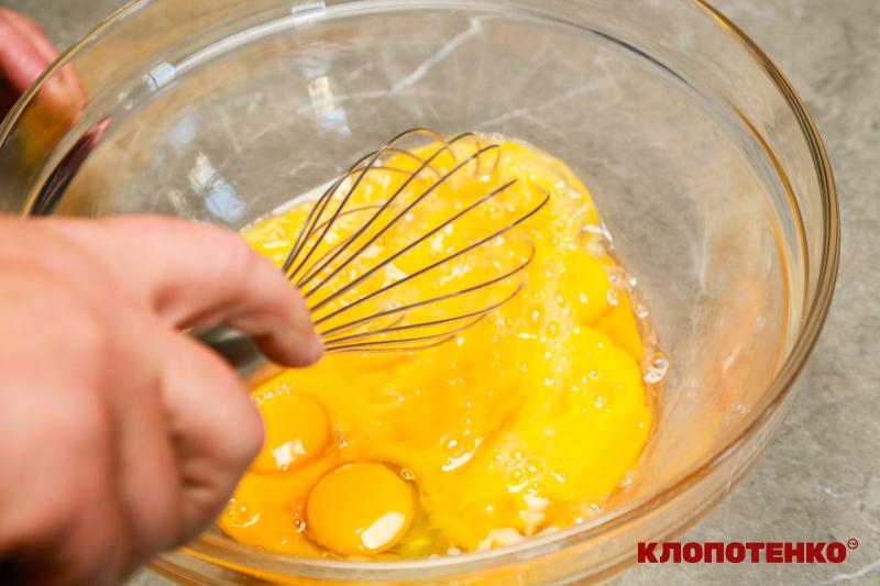 Змішайте у мисці 10 яєць та збийте їх до однорідності.