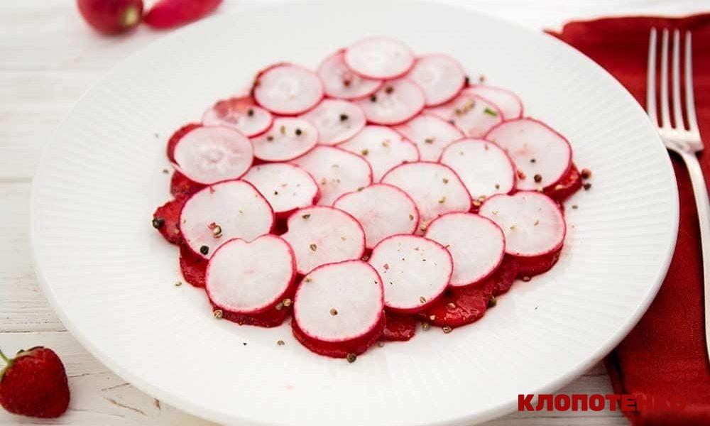 Передплати прямо заразОригінальна закуска: карпачо з редискою та полуницею