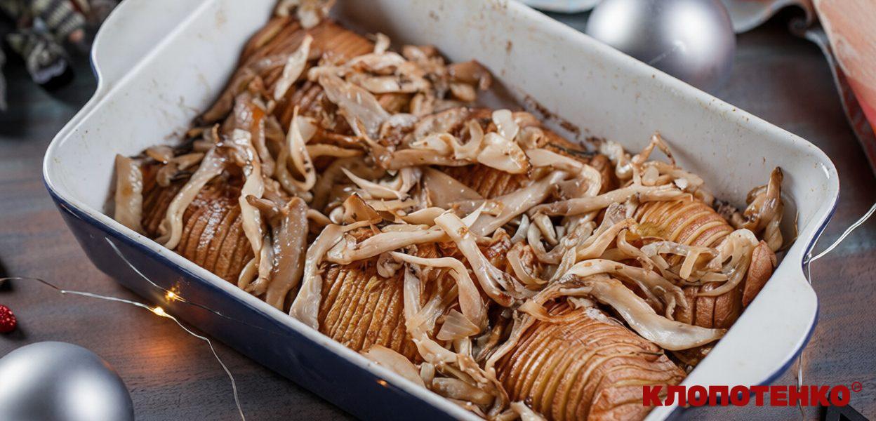 Я знаю, що багато кому подобається запечена картопля з грибами. Я, власне, теж належу до цих людей. У якийсь момент мені здалося, що традиційний рецепт запеченої картоплі досить приївся. Тому я трохи удосконалив рецепт і зробив його цікавішим. Вся справа у нарізці і у вершковому маслі. Завдяки тонкій нарізці, картопля запікається більш рівномірно, а вершкове масло надає їй абсолютно дивовижного смаку. Це буде ваш ідеальний гарнір на кожен день і для святкового столу. А якщо не знаєте, що приготувати на новий рік в якості гарніру, то не сумнівайтеся в ньому ні секунди.