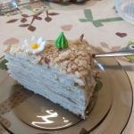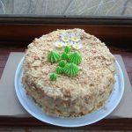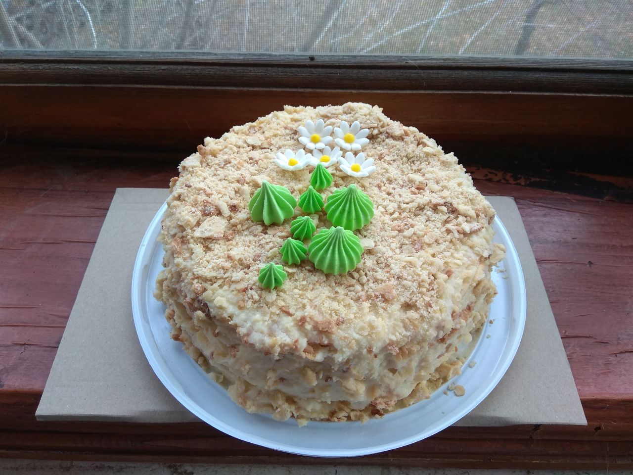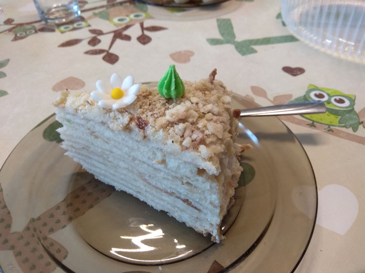 Складність приготування цього торта в тому, що вам потрібно розкачати та випекти 10-12 коржів. При цьому, випікати їх краще по одному, щоб вони рівномірно приготувалися. Один корж печеться 6-7 хвилин за температури 200 градусів. Щоб трохи прискорити процеси ви таки можете випікати 2 коржі одночасно на різних деках, але десь через 3 хвилини міняйте їх місцями.