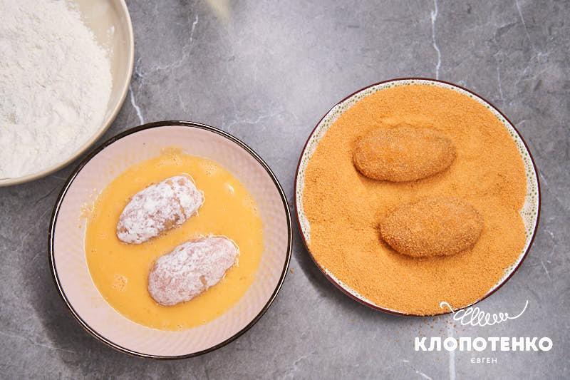 Смажити котлети можна в повному фритюрі чи напівфритюрі. Ми пропонуємо другий варіант, щоб страва була трішки корисніша, а ви використали менше олії. Так, звісно, котлету доведеться перевертати кілька разів і контролювати, щоб вона гарно просмажилася з усіх боків.