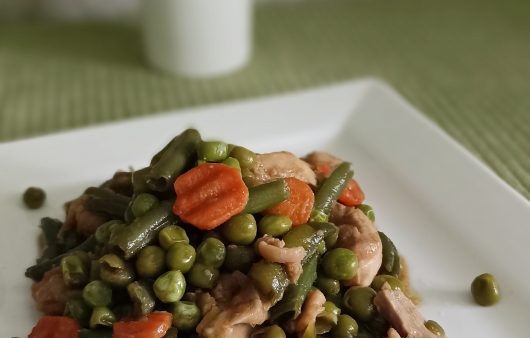 Ми готуємо курку дуже часто, бо з неї можна готувати безліч крутих страв. Одна курка в імбирному маринаді чого варта, а ще крильця у соєво-медовому соусі та моє найулюбленіше – запечена курка з начинкою з пшениці. Класних рецептів у мене багато, але я не зупиняюсь на досягнутому. І сьогодні пропоную приготувати пречудову курку з овочами у східному стилі. Гострий імбир і пряна куркума ідеально поєднуються з курятиною, як і зелений горошок, морква та стручкова квасоля, що дуже легко перетворюються в ідеальний гарнір, потрапивши на одну пательню з куркою.