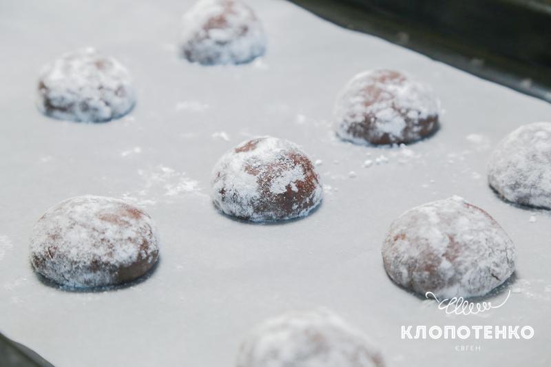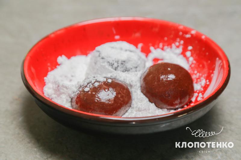 Сформуйте з тіста кульки по 20-25 г кожна та обваляйте у цукровій пудрі. Точну кількість не кажемо, головне, щоб кожна кулька була повністю у пудрі.