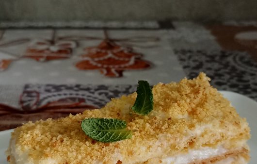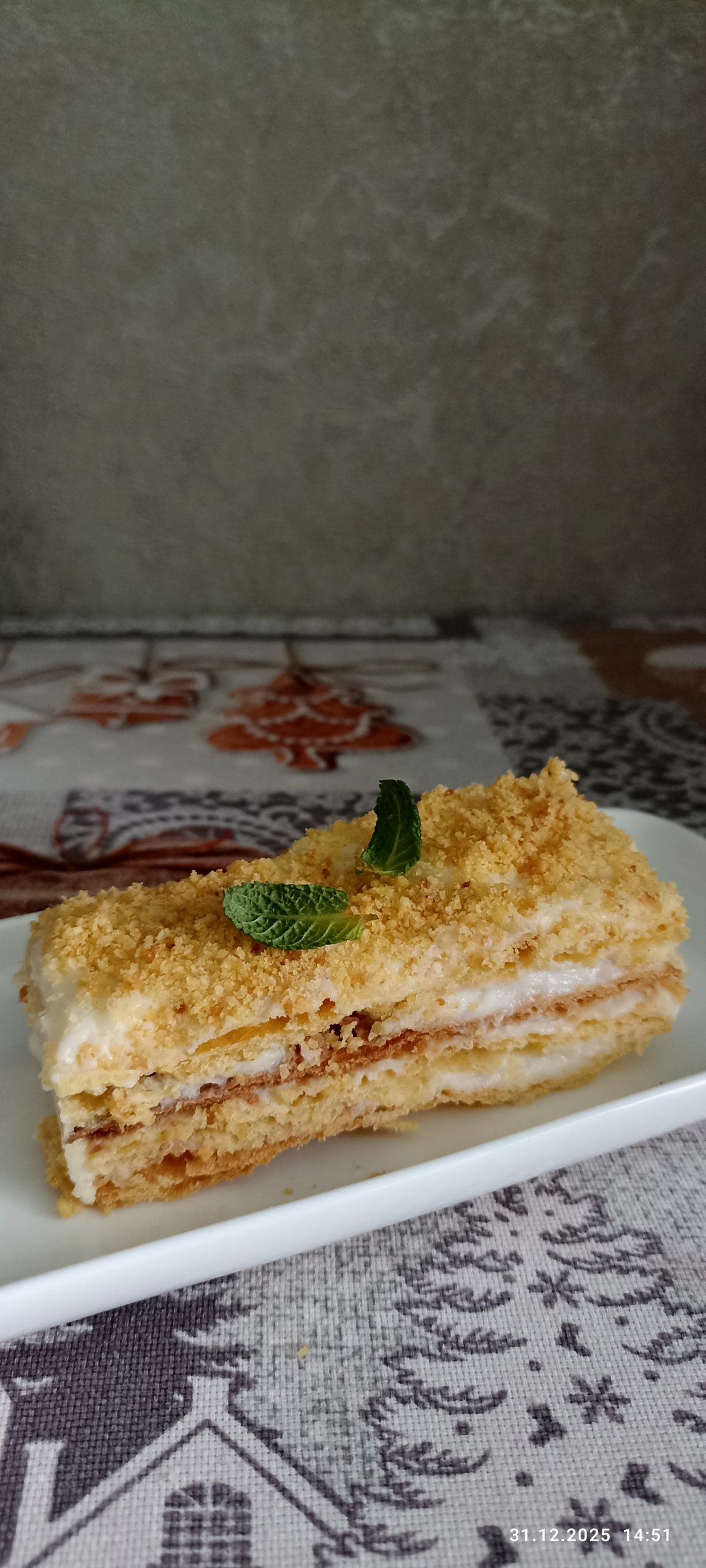 При подачі посипте наполеон крихтою із залишків готового тіста.