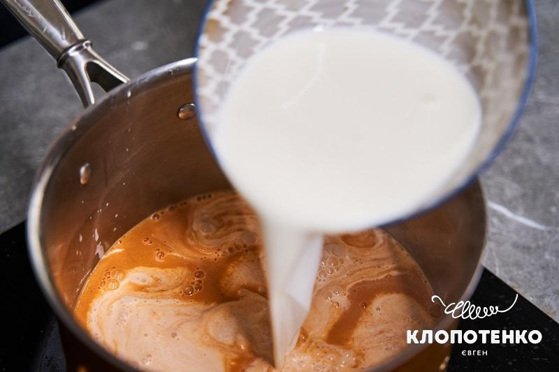 Додайте до супу 500 мл вершків, гарно перемішайте та поставте варитися на середньому вогні. Варіть приблизно 15 хвилин, постійно помішуючи, поки суп не почне загусати та не зменшиться в об’ємі приблизно вдвічі.