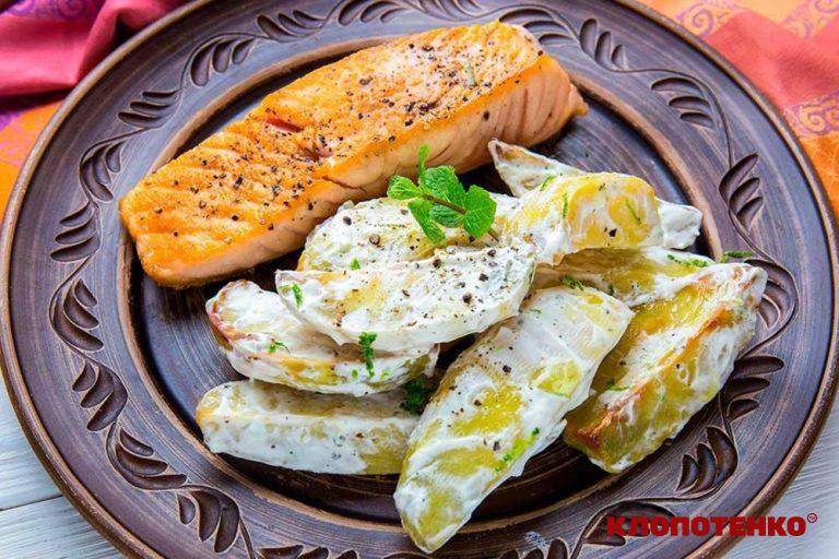 ВідеоСмажений лосось із картоплею конфі
