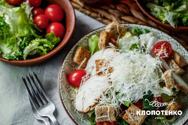 СалатиЗ курячим філе та томатами чері. Салат а-ля Цезар