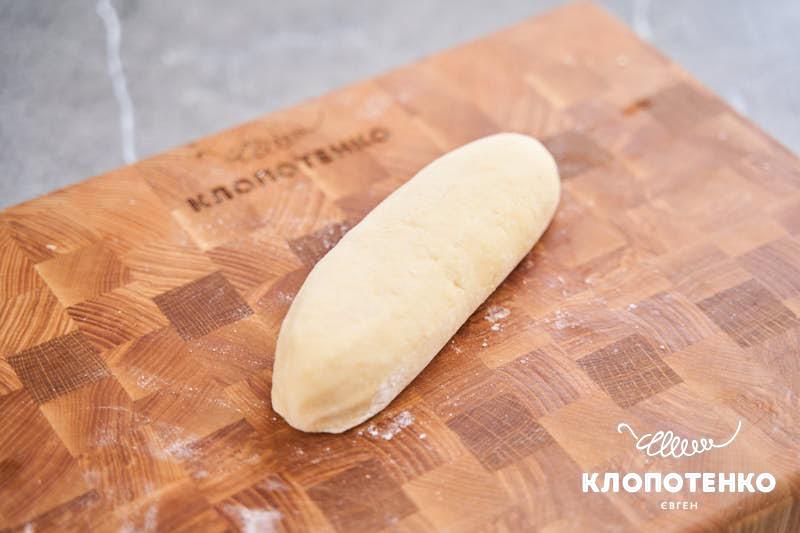 У чималій мисці змішайте 650 г борошна, 300 мл холодної води та ½ ч.л. солі. Замісіть однорідне тверде тісто та поставте в холодильник на 30 хвилин, загорнувши в харчову плівку.