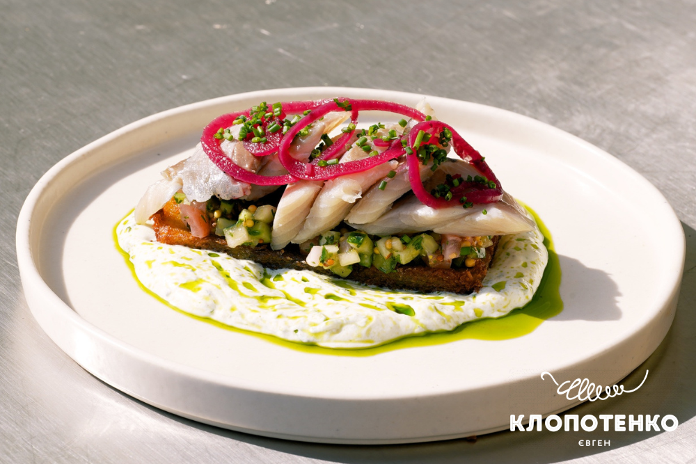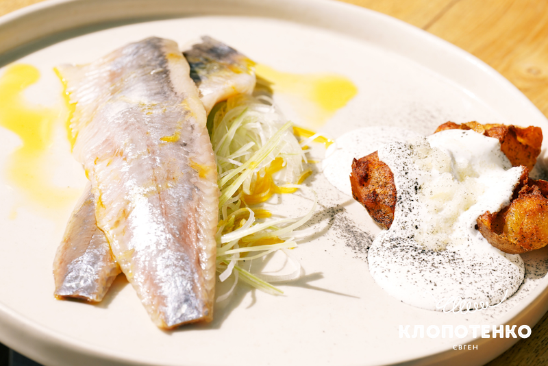 У закладі «Полтава» від Євгена Клопотенка та Інни Поперешнюк у меню з’явилася закуска з дунайки, котру подають на картопляному книші з ферментованим редисом, свіжим огірком, соусом на основі йогурту й тархуну, свіжою зеленою цибулею та маринованою фіолетовою.