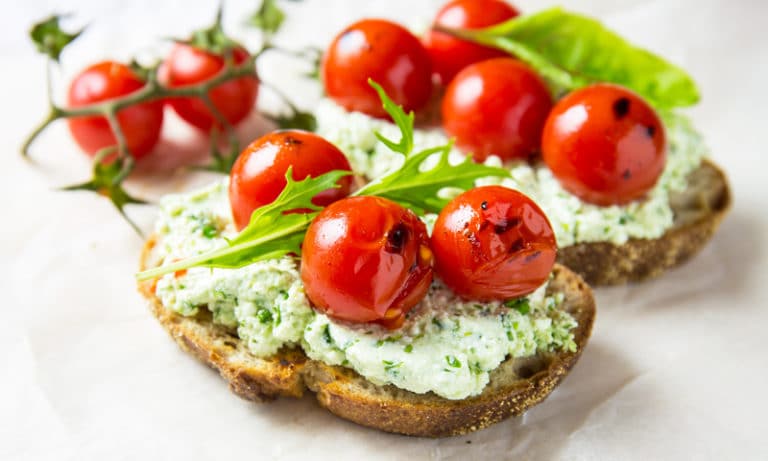 ЗакускиБрускетты с творогом и томатами черри