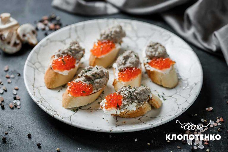 ЗакускиПрекрасное сочетание вкусов: канапе с грибным паштетом и красной икрой