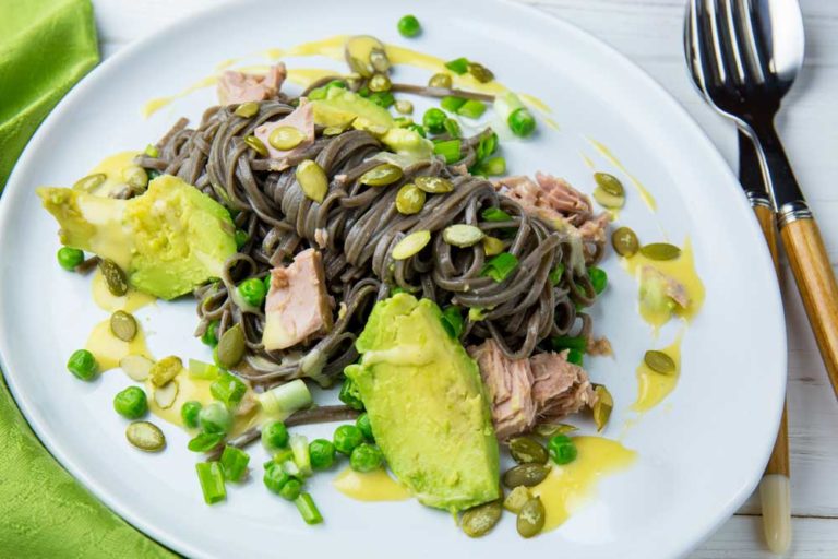 ЗакускиТунец, авокадо и соус с васаби. Рецепт салата из японской лапши