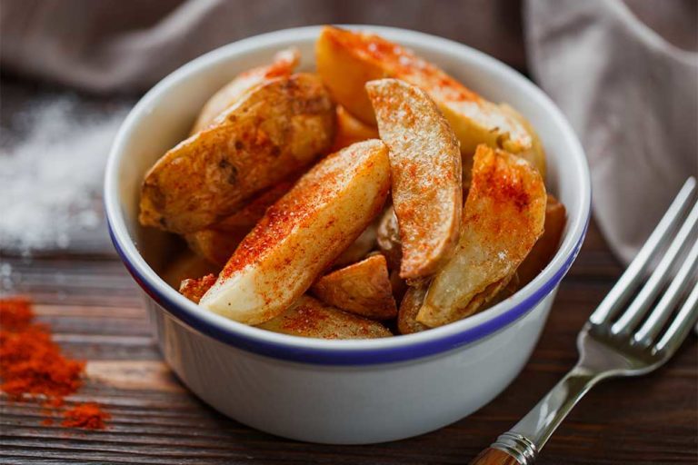 Для этого блюда нужно взять картофель с высоким содержанием крахмала, тогда он получится сверху с румяной корочкой, а внутри мягкий и нежный. Необычный вкус и аромат блюду придадут пряности – чеснок и тимьян. Подавать картофель по-селянски можно с соусами как основное блюдо либо гарнир.