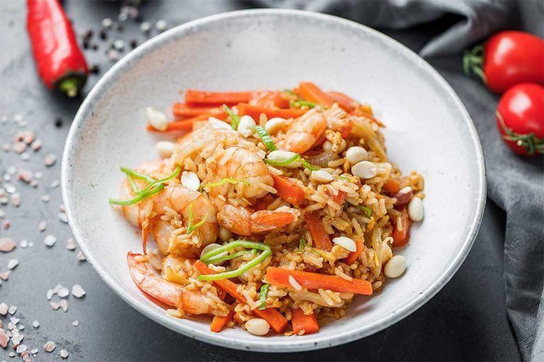 Самое важное, что нужно знать о рисе – это пропорции. Все очень просто – на 1 часть риса нужно добавить 2 части воды. Тогда все получится как надо. Солить рис также лучше в начале приготовления. Засыпьте рис в кастрюлю, влейте воду и посолите. Когда вода закипит, дайте рису прокипеть минут 5, затем просто накройте крышкой и отставьте на 15 минут. За это время вода впитывается. Такой способ подходит к любому рису, но время может немного варьироваться: для круглозернистого требуется меньше времени, для нешлифованного – немного больше. Обратите внимание на время приготовления, которое указывают на упаковке.