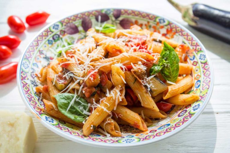 Вторые блюдаПаста с томатом и баклажаном