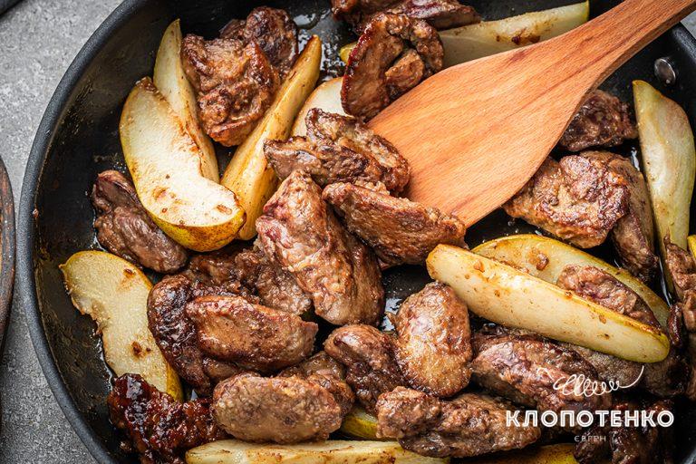 Другі стравиНіжна куряча печінка з карамелізованою грушею від Євгена Клопотенка