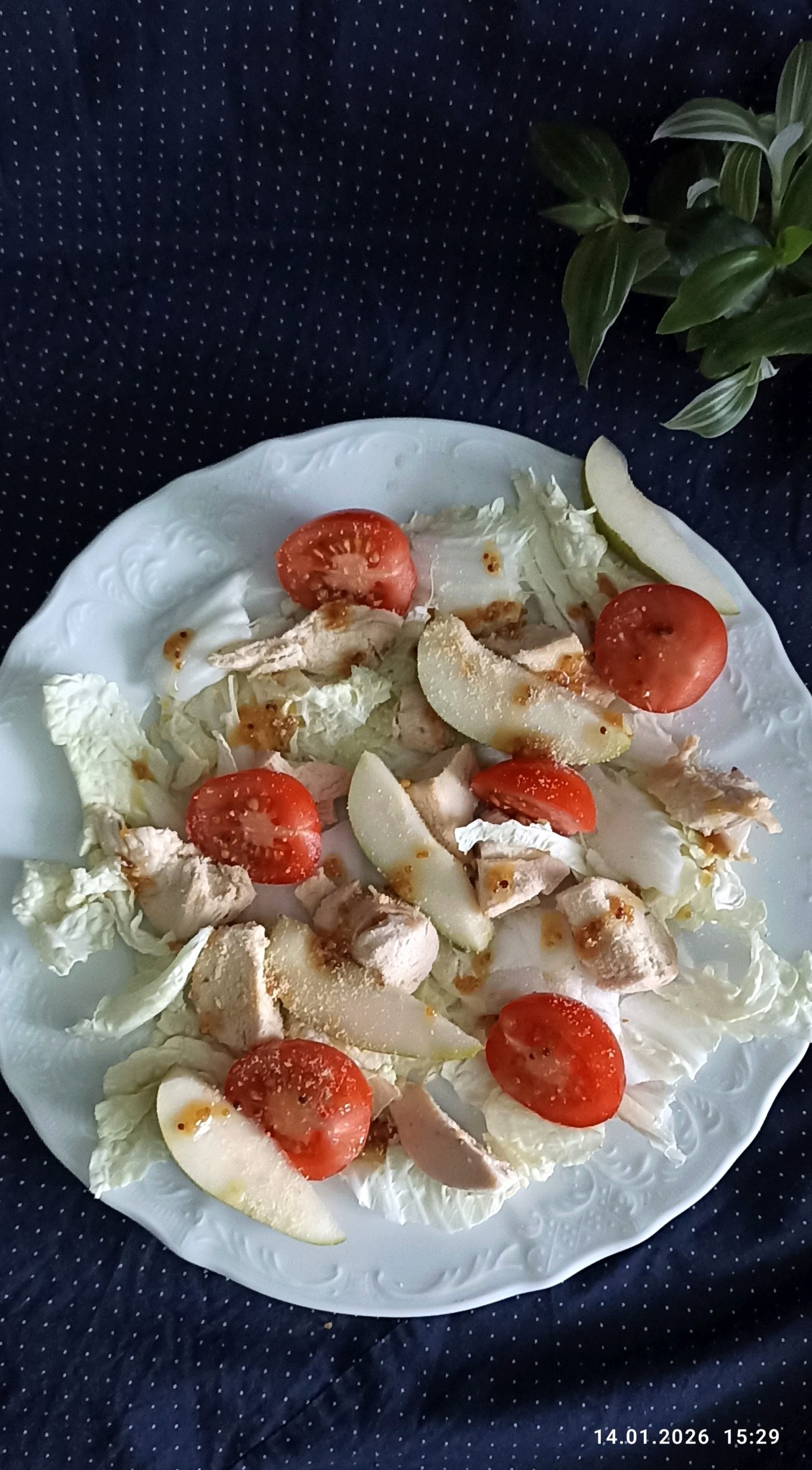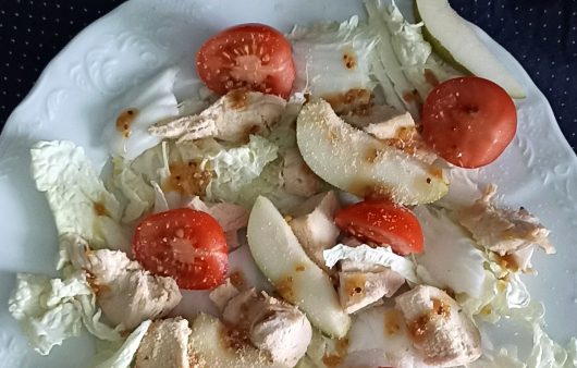 Хочу поділитися з вами рецептом дуже простого салату, який я приготував одного разу з продуктів, які були у мене в холодильнику. Він вийшов дуже свіжим і смачним, а головне його дуже просто приготувати. Обов’язково спробуйте цей салат з грушею і запеченою курячою грудкою. До слова, пекінську капусту можна замінити савойською, салатним листям, міксом салатів. Загалом експериментуйте!