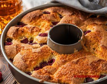 Якщо ви любите випічку на основі кефіру, цей пиріг вам точно сподобається. Готується максимально просто, бо всі інгредієнти для тіста потрібно змішати до однорідної консистенції. Щоб малина не пустила зайвий для пирога сік, попередньо її змішують з кукурудзяним крохмалем. Такий пиріг виходить максимально пухким та тане у роті.