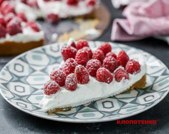 Знаємо, що не всі дружать з випічкою, тому десерти без випікання в такому випадку дуже рятують. Маємо крутий рецепт тарту з вершковим кремом та свіжою малиною, що має ніжний смак та неймовірний зовнішній вигляд. Такий тарт можна сміливо додавати до святкового меню або ж порадувати десертом рідних без приводу.