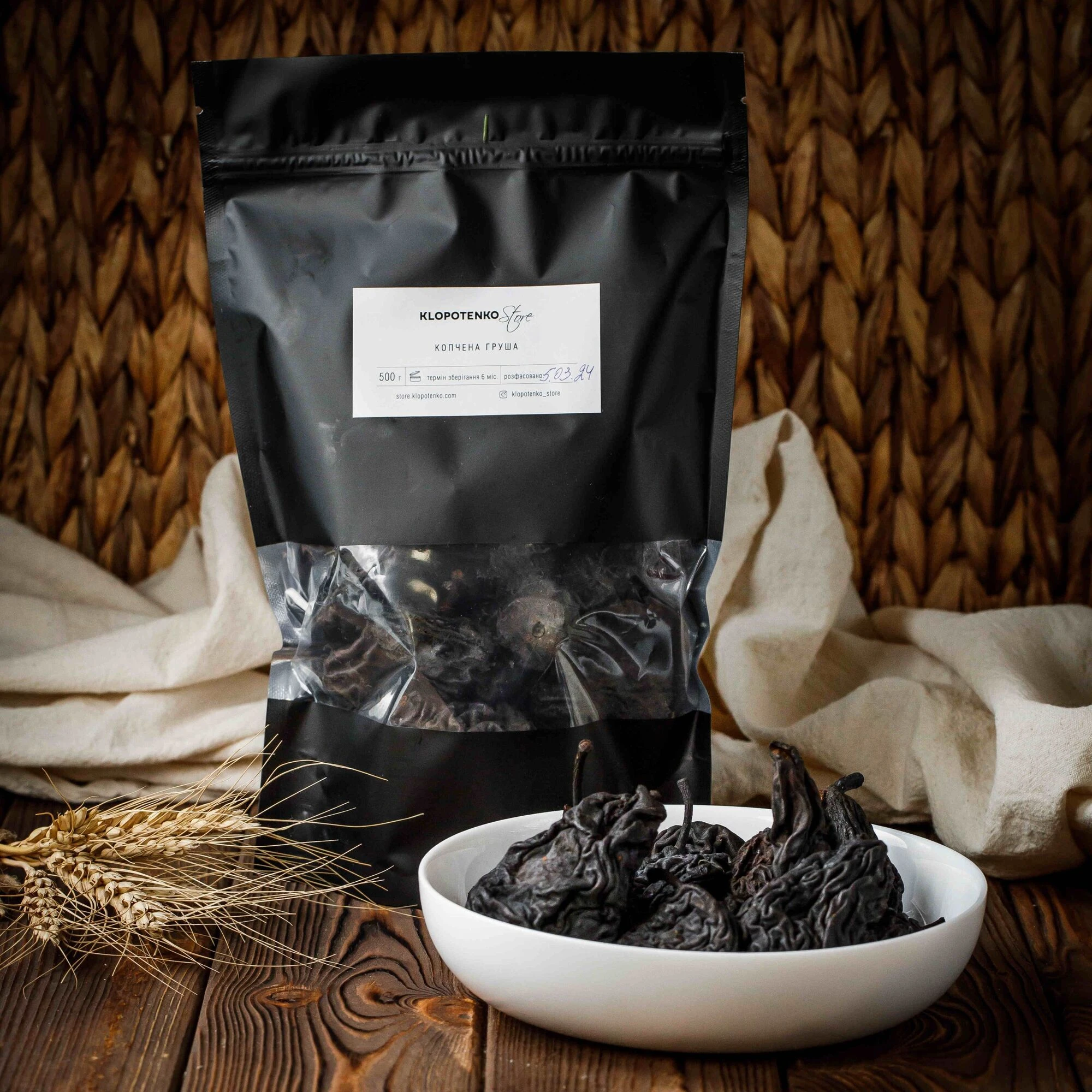 Копчена груша — це традиційний український продукт: відбірні груші, вирощені в Наддніпрянщині, сушаться природним шляхом, а потім коптяться без консервантів, барвників і штучних ароматизаторів. Завдяки копченню фрукт зберігає чимало вітамінів та мінералів, а ще отримує легку терпкість і приємний димний аромат — ідеально пасує до борщу, соусів, маринадів або узвару