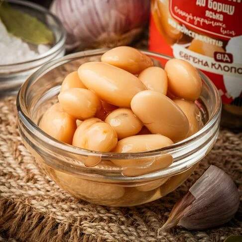 Продукт виготовляють за фірмовим рецептом Євгена Клопотенка з квасолі сорту «Яська», який вирощує одна родина на Заході України вже більше 100РОКІВ. В цій квасолі на 20% більше білків у порівнянні зі звичайною. Технологія приготування стандартна, спочатку замочення, потім відварювання. А завдяки різним режимах стерилізації вдалося зберегти такий апетитний вигляд та цілісну структуру кожної квасолини.