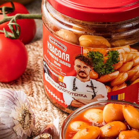 Продукт виготовляють за фірмовим рецептом Євгена Клопотенка з квасолі сорту «Яська», який вирощує одна родина на Заході України вже більше 100РОКІВ. В цій квасолі на 20% більше білків у порівнянні зі звичайною. Технологія приготування стандартна, спочатку замочення, потім відварювання. А завдяки різним режимах стерилізації вдалося зберегти такий апетитний вигляд та цілісну структуру кожної квасолини. Зі спецій обовʼязково додається часник, материнка (вона ж орегано або душниця) та, власне, томатна паста.