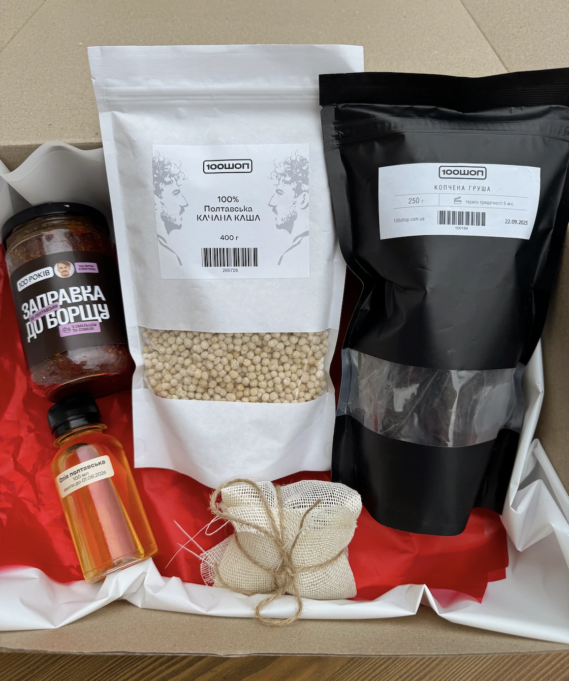 Набір «Скуштуй Полтавщину на смак» — це подорож у саме серце українських кулінарних традицій. Ідеальний подарунок для тих, хто прагне відчути автентику та теплоту Полтавщини, а також поділитися її неповторними смаками з рідними чи друзями.