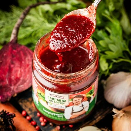 Борщову заправку «100РОКІВ» виготовляють за фірмовим рецептом шеф-кухаря Євгена Клопотенка з овочів, що виросли на українських землях. Цей продукт має особливий копчений присмак, який досягається завдяки додаванню копчених інгредієнтів, як-от груша. А симбіоз буряку та ферментованому рису надає заправці яскравий та насичений колір. Це натуральний рис, який ферментується на полях, що дає йому стійке червоне забарвлення. Для кислотності додається лимонна кислота, томатна паста і квашені томати.