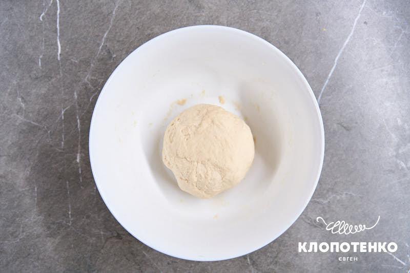 У 500 г просіяного борошна додайте 200 мл води, 1 яйце, 1 ст.л. олії та ½ ч.л. солі. Ретельно перемішайте та вимішайте еластичне тісто. Лишіть його відпочити на 15 хвилин.