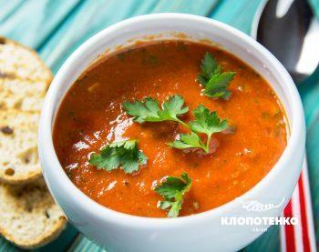 Якщо вам хочеться супу з ніжною текстурою, спробуйте гаспачо. Класично цей суп подається холодним і готується зі свіжих овочів. Але із запеченими овочами виходить смачніше, а ще в такому випадку суп можна подавати гарячим. Грінки ідеально доповнять цю страву.