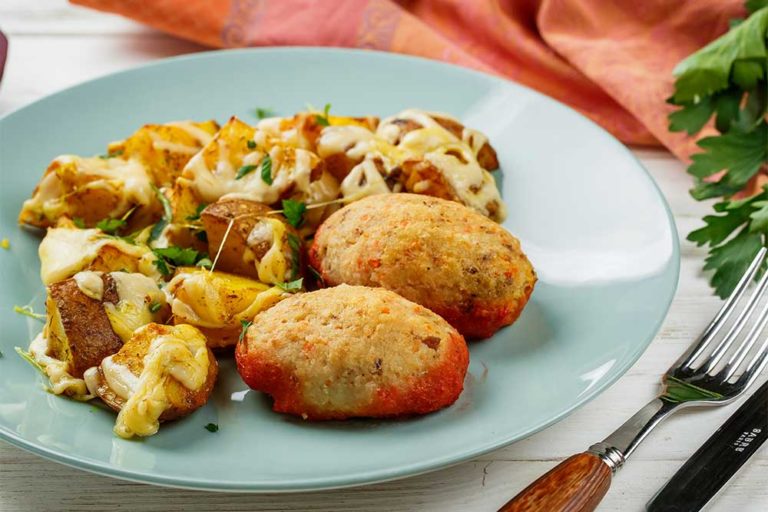 Другі стравиРибні котлети в духовці: рецепт із запеченою картоплею під сиром
