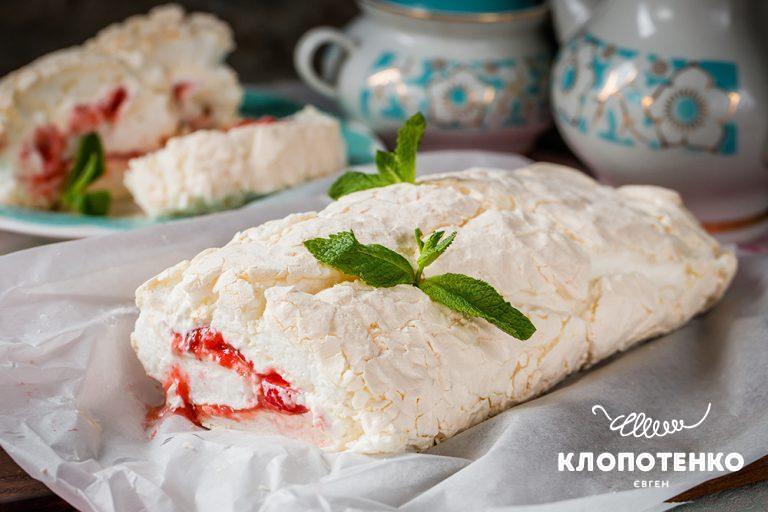 ВипічкаНайпопулярніший десерт літа. Меренговий рулет з полуницею від Євгена Клопотенка