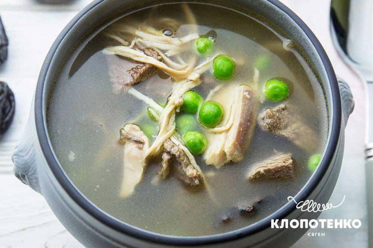 Перші стравиМ’ясний суп з чорносливом і зеленим горошком