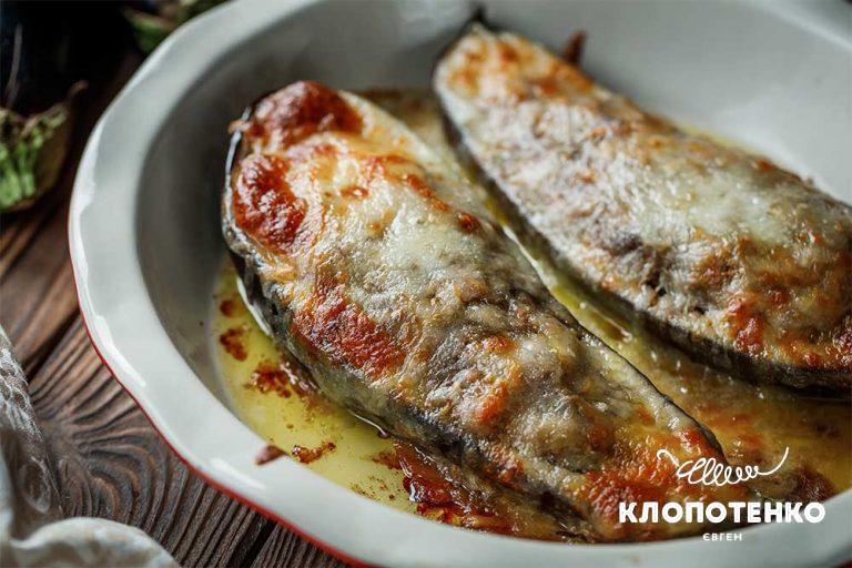 На крупній тертці натріть 70 г сиру та посипте кожну половинку овочу. Ставте запікатися на 20 хвилин в режимі верхнього та нижнього нагріву. За цей час баклажани мають стати м’якими, а сирний вверх добре підрум’янитися.