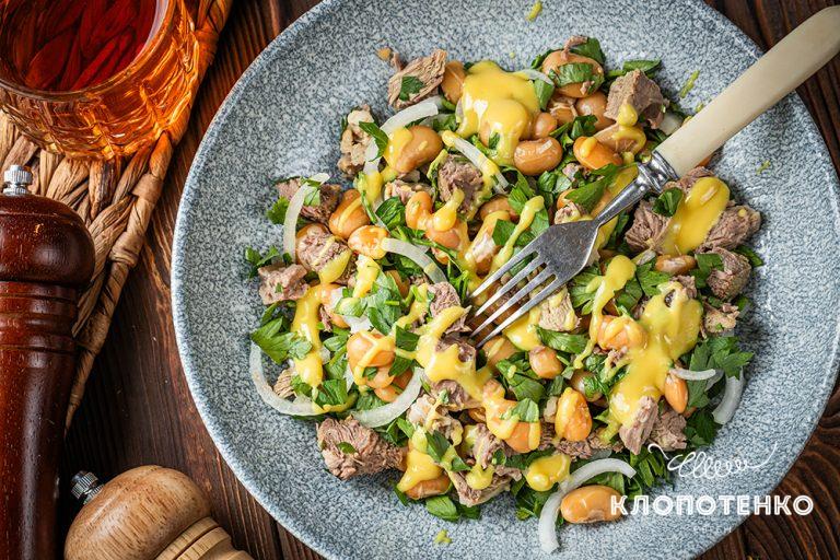 Дієтичні стравиБагатий на білок. Салат з квасолі і м’яса від Євгена Клопотенка