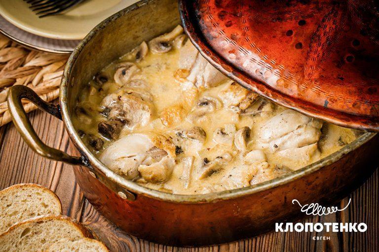 Другі стравиКурячі гомілки, тушковані з печерицями та вершками