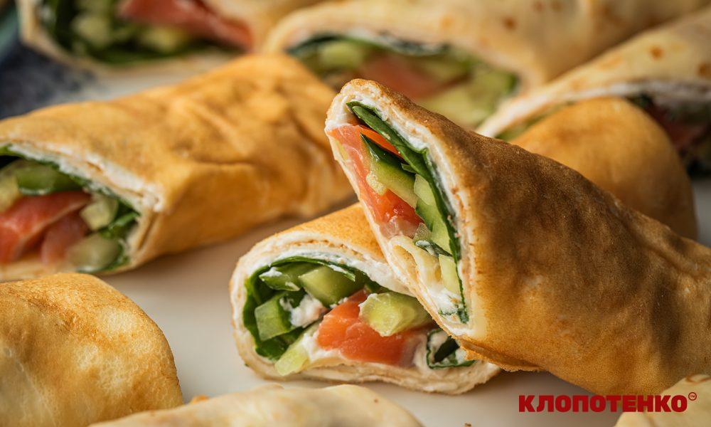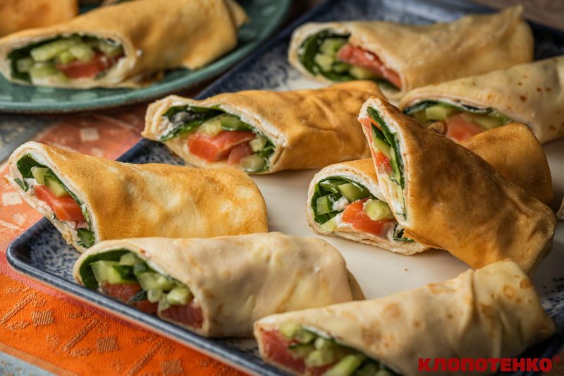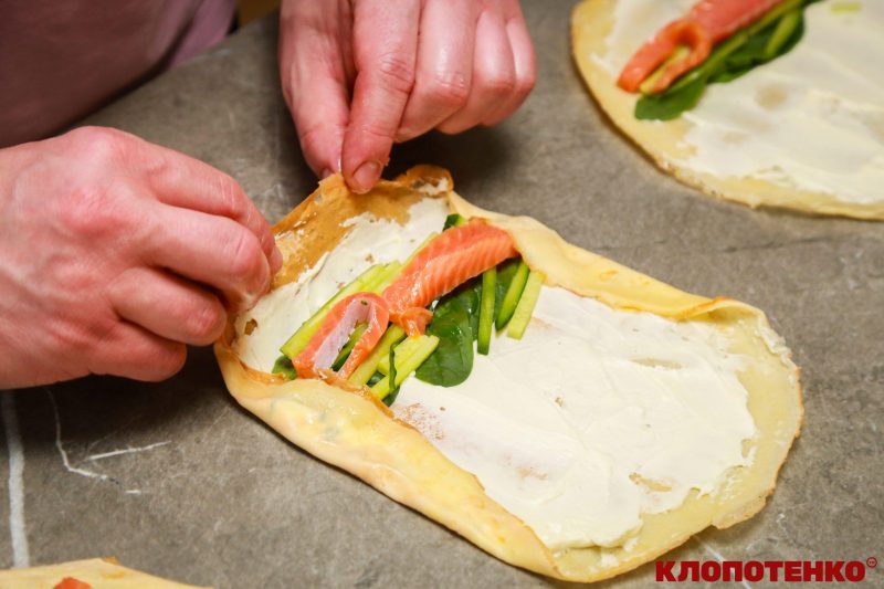 Українська відповідь ролам. Млинці з червоною рибою, огірком та крем-сиром від Євгена Клопотенка