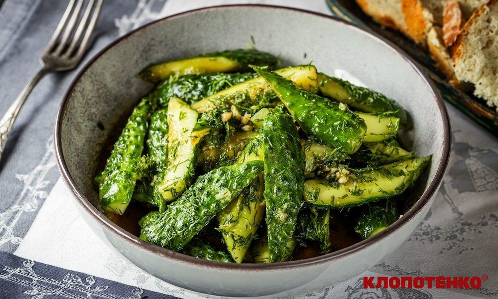 Дайте огіркам промаринуватися як мінімум одну годину. Зберігайте страву у холодильнику не довше 2-3 днів.
