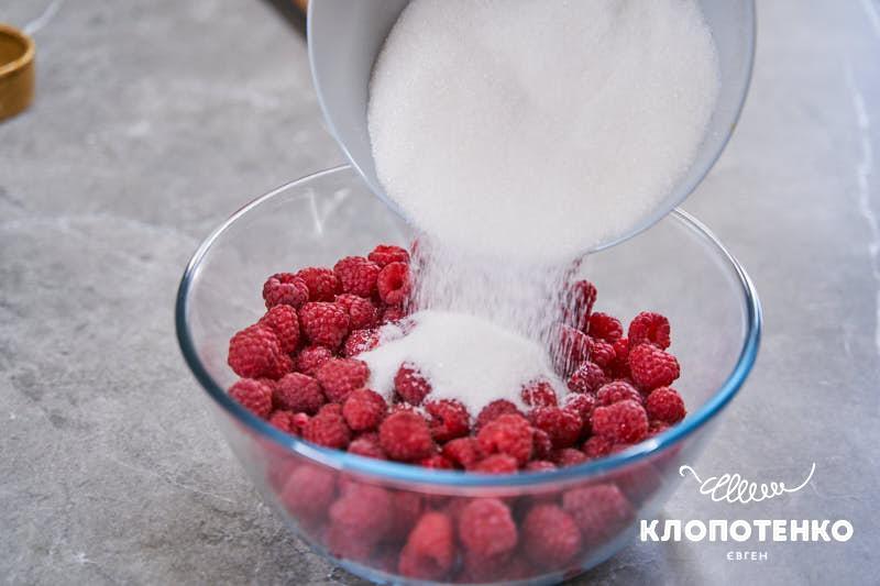 Переберіть малину, перекладіть 2 кг у каструлю та засипте її 1 кг цукру на ніч або на 6-8 годин, накривши кришкою.